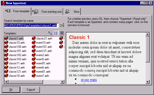 New Hypertext from template New hypertext from existing one New Hypertext New Hypertext from template Choose here one of the available templates... Preview of the selected template...