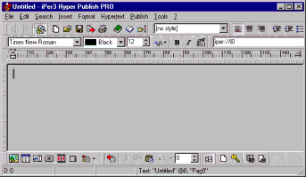 As you can see, the toolbars are very similar to MS Word ones. For the moment, just notice that the white cell at the bottom of the window shows the page number, “0”. As EasyWebEditor manages a whole page set, each page has a name and a number: the name is under the cell (”Untitled”).
