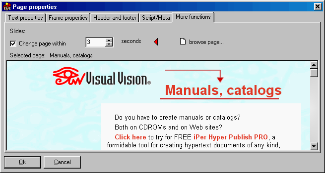 With this interesting function you can replace the current page with another one, after N seconds, just like a slide... Click on the image to get Help: