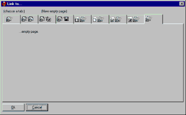 In this window EasyWebEditor lists all the pages found in the current site/hypertext. So, for the moment, we have only one page. As we want to link to a new page (that will be “Page 1”), we have to choose the last tab (”link to a new empty page”):