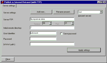 Before publishing your site, you must first set up the FTP parameters. You only have to do this once and you can obtain all your parameters from your system administrator, your ISP, or your host.
